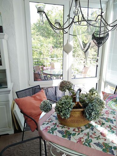 Am großen Esstisch neben dem offenen Kamin finden alle Gäste ihren Essplatz. Im Wohnzimmer und im Wintergarten kann man den Tag ausklingen lassen.